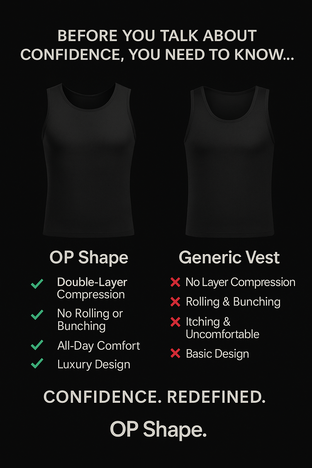 Unlike standard men’s shapewear, our vest features a double-layered fabric construction—delivering enhanced shaping performance, superior support, and lasting comfort.